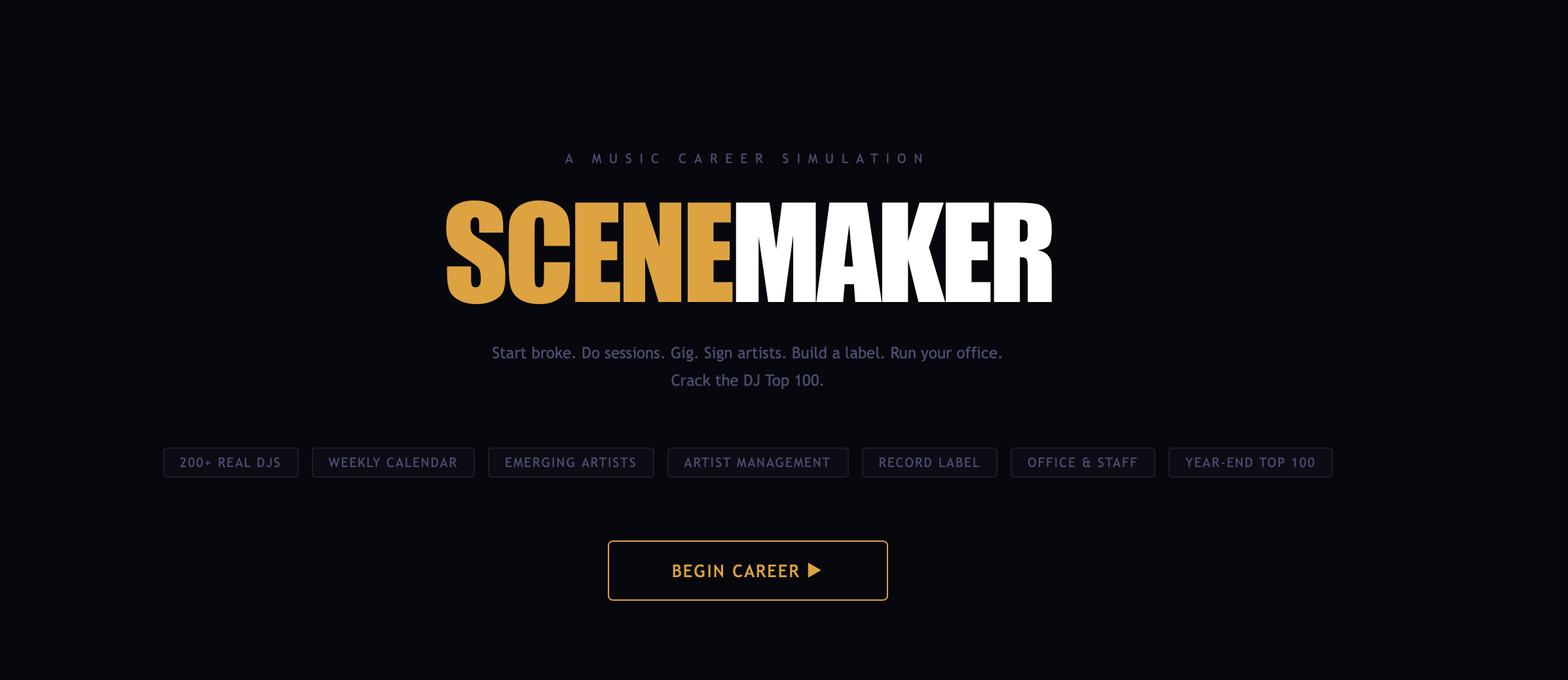 SceneMaker drops you into the brutal reality of building a music career from nothing. Mix bedroom EPs for pocket change. Chase gigs from promoters who've never heard of you. Watch your cash drain every week whether you worked or not.